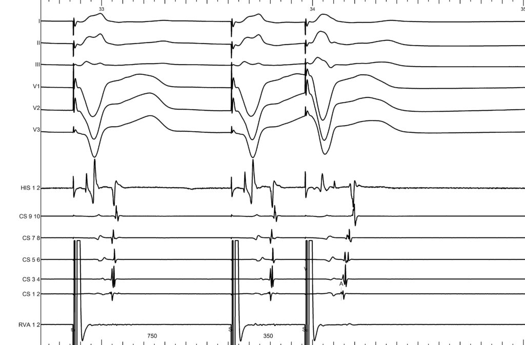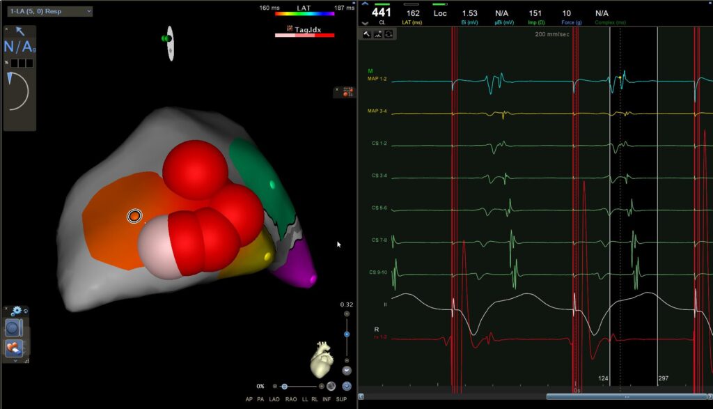 You can clearly see on the mapping, at the level of the ablation catheter, that there is a fusion between the atrial and ventricular signals.