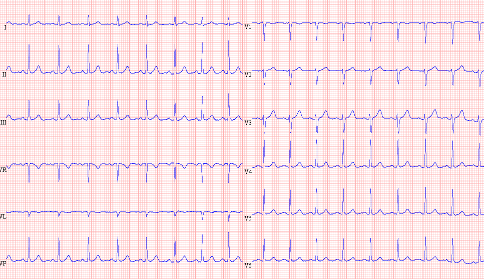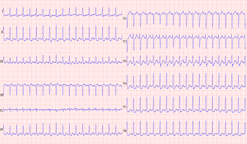 SVT 220 bpm, difficult to say where is the P wave…