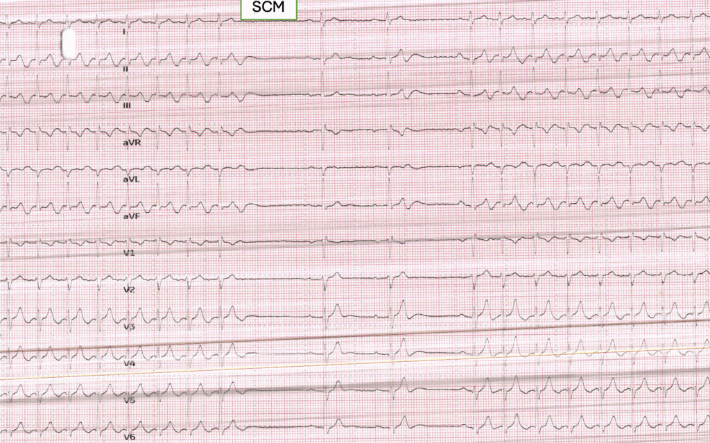 A tachycardia was detected during elbow surgery performed after a mechanical fall; the patient was asymptomatic.
