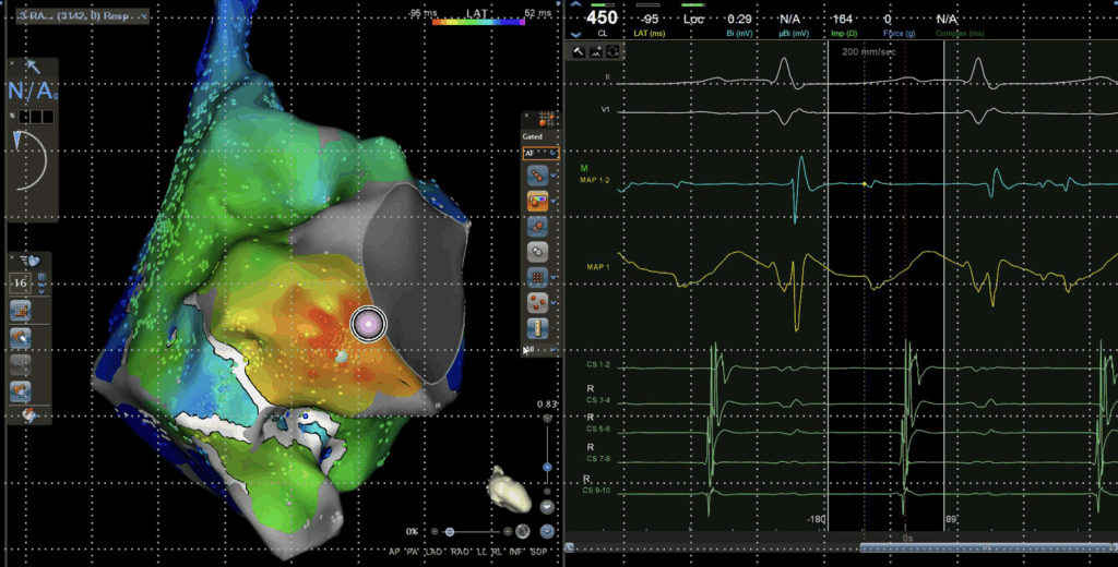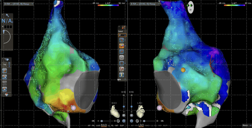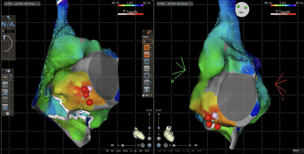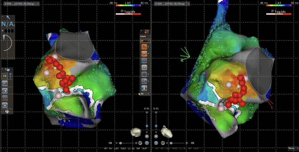 A CTI ablation was performed as well, since the atrial tachycardia was located on the tricuspid side of the CTI.