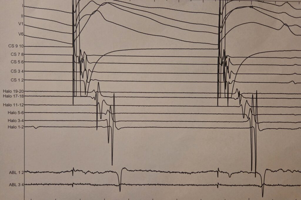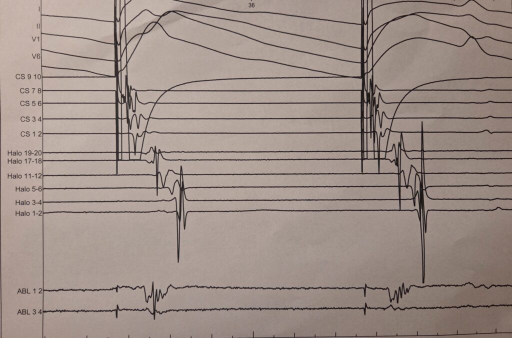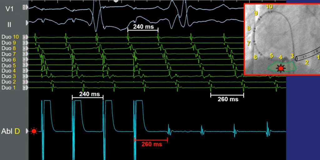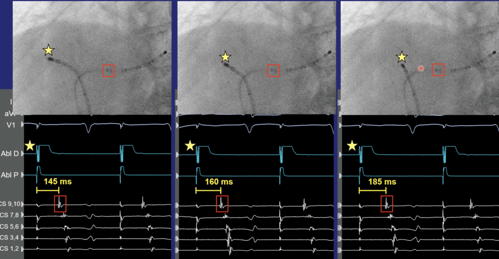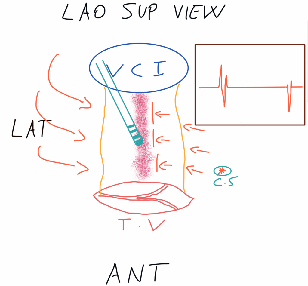 The area of interest is the CTI, which in the RAO view lies between the tricuspid valve and the inferior vena cava.