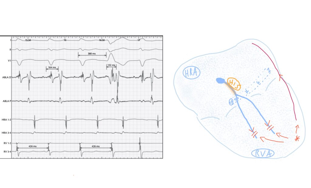 We know that right ventricular pacing with advancement of the atrium suggests a septal or right-sided pathway.