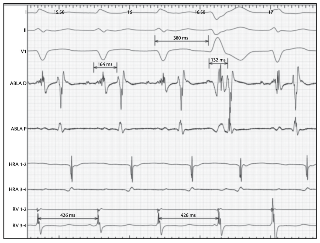Similarly, left ventricular pacing with advancement of the atrium indicates a left-sided pathway.
